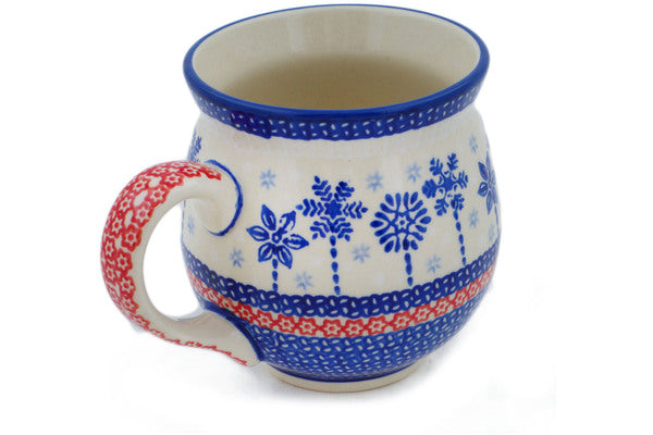 This Winter Sights 19 oz Bubble Mug was handmade and hand decorated in Boleslawiec, Poland by skilled artisans according to old traditional methods. This is a Polish pottery Signature Unikat, which means that it has been hand painted with both sponges and brushes and it is signed by the artist who painted it. Unikat pieces are the most intricate works of art. Larger Unikat items take hours of very careful work to finish. This Polish stoneware is microwave, dishwasher, freezer, and oven safe up to 480°F. It does not contain lead or cadmium. It is part of the Winter Sights Collection.