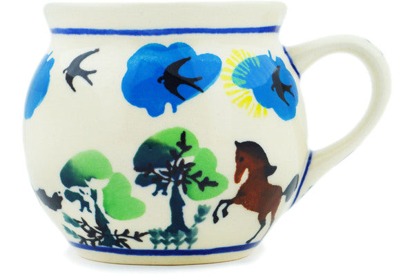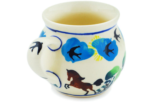 This Like The Wind 7 oz Bubble Mug was handmade and hand decorated in Boleslawiec, Poland by skilled artisans according to old traditional methods. This Polish stoneware is microwave, dishwasher, freezer, and oven safe up to 480°F. It does not contain lead or cadmium. It is part of the Like The Wind Collection.
