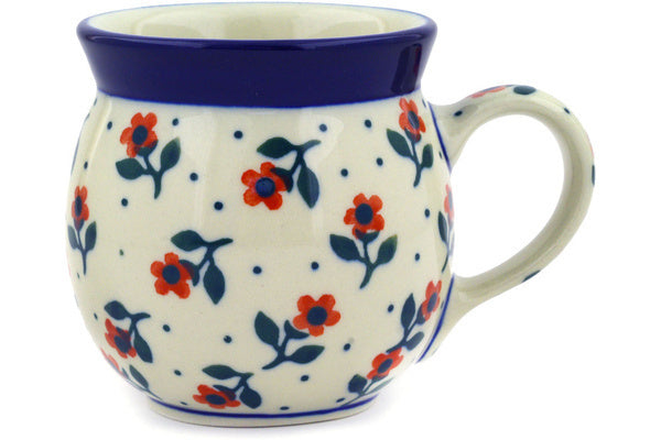 This Auntie Em Scarlet 8 oz Bubble Mug was handmade and hand decorated in Boleslawiec, Poland by skilled artisans according to old traditional methods. This Polish stoneware is microwave, dishwasher, freezer, and oven safe up to 480°F. It does not contain lead or cadmium. It is part of the Auntie Em Scarlet Collection.