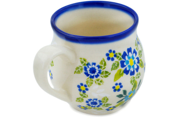 This Forget-me-not Field 8 oz Bubble Mug was handmade and hand decorated in Boleslawiec, Poland by skilled artisans according to old traditional methods. This Polish stoneware is microwave, dishwasher, freezer, and oven safe up to 480°F. It does not contain lead or cadmium. It is part of the Forget-me-not Field Collection.