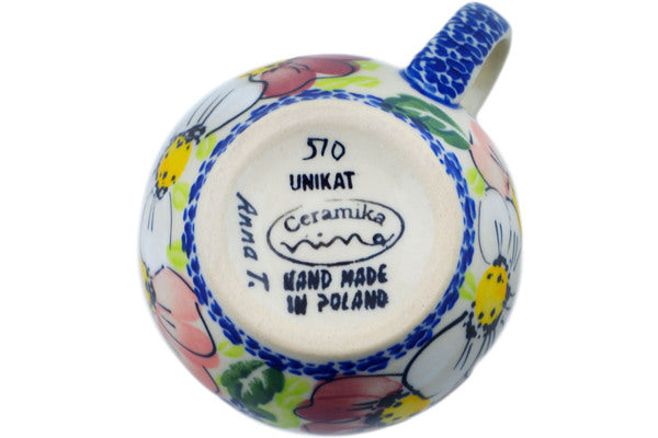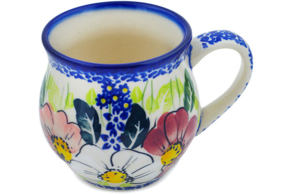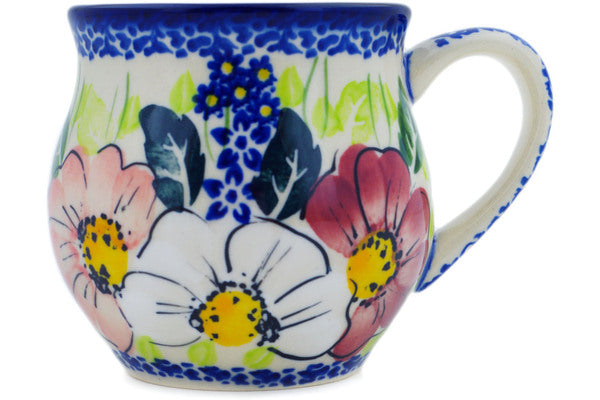 This Maroon Blossoms 8 oz Bubble Mug was handmade and hand decorated in Boleslawiec, Poland by skilled artisans according to old traditional methods. This is a Polish pottery Signature Unikat, which means that it has been hand painted with both sponges and brushes and it is signed by the artist who painted it. Unikat pieces are the most intricate works of art. Larger Unikat items take hours of very careful work to finish. This Polish stoneware is microwave, dishwasher, freezer, and oven safe up to 480°F. It does not contain lead or cadmium. It is part of the Maroon Blossoms Collection.
