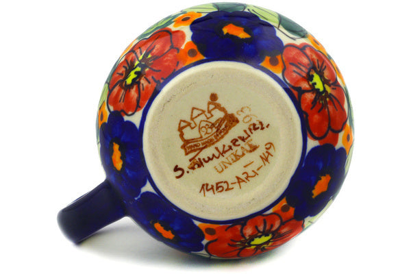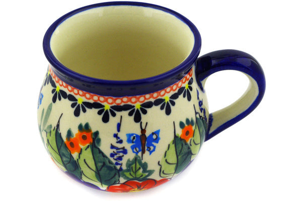 This Spring Splendor 8 oz Bubble Mug was handmade and hand decorated in Boleslawiec, Poland by skilled artisans according to old traditional methods. This is a Polish pottery Signature Unikat, which means that it has been hand painted with both sponges and brushes and it is signed by the artist who painted it. Unikat pieces are the most intricate works of art. Larger Unikat items take hours of very careful work to finish. This Polish stoneware is microwave, dishwasher, freezer, and oven safe up to 480°F. It does not contain lead or cadmium. It is part of the Spring Splendor Collection.