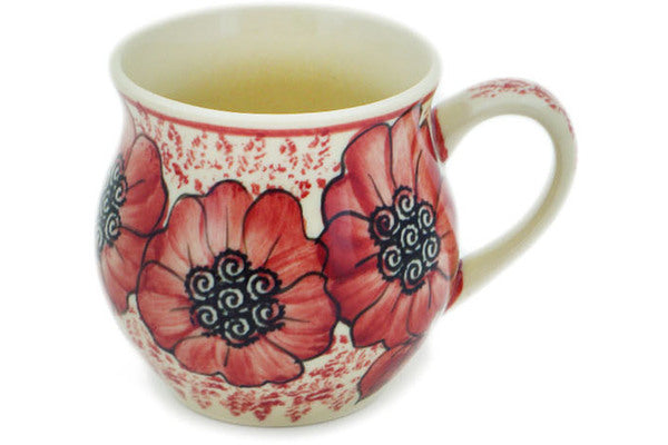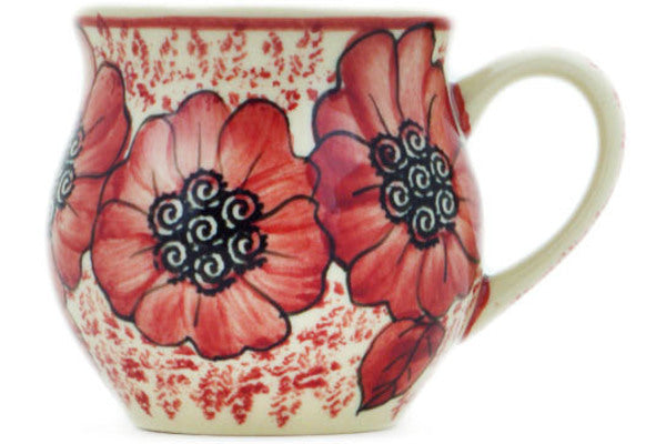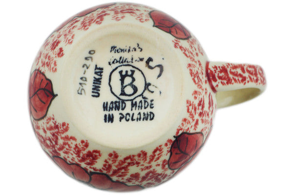This Sugar Plum Poppies 8 oz Bubble Mug was handmade and hand decorated in Boleslawiec, Poland by skilled artisans according to old traditional methods. This is a Polish pottery Signature Unikat, which means that it has been hand painted with both sponges and brushes and it is signed by the artist who painted it. Unikat pieces are the most intricate works of art. Larger Unikat items take hours of very careful work to finish. This Polish stoneware is microwave, dishwasher, freezer, and oven safe up to 480°F. It does not contain lead or cadmium. It is part of the Sugar Plum Poppies Collection.
