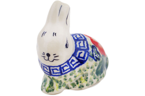 This Happiness 3" Bunny Figurine was handmade and hand decorated in Boleslawiec, Poland by skilled artisans according to old traditional methods. This is a Polish pottery Signature Unikat, which means that it has been hand painted with both sponges and brushes and it is signed by the artist who painted it. Unikat pieces are the most intricate works of art. Larger Unikat items take hours of very careful work to finish. This Polish stoneware is microwave, dishwasher, freezer, and oven safe up to 480°F. It does not contain lead or cadmium. It is part of the Happiness Collection.