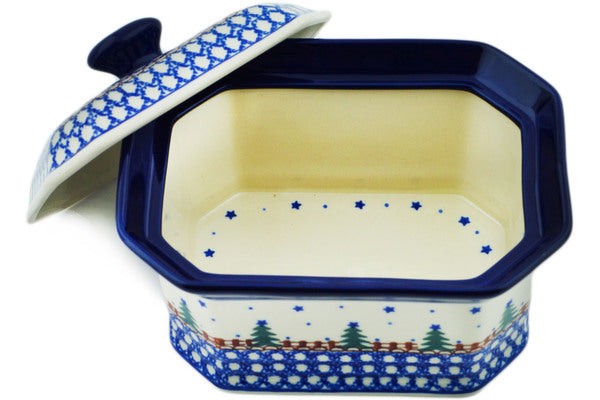 This Pocono Pines 6" Cake Box 6" was handmade and hand decorated in Boleslawiec, Poland by skilled artisans according to old traditional methods. This Polish stoneware is microwave, dishwasher, freezer, and oven safe up to 480°F. It does not contain lead or cadmium. It is part of the Pocono Pines Collection.