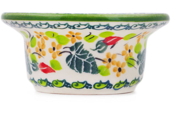 This Morning Divine 3" Candle Holder was handmade and hand decorated in Boleslawiec, Poland by skilled artisans according to old traditional methods. This is a Polish pottery Signature Unikat, which means that it has been hand painted with both sponges and brushes and it is signed by the artist who painted it. Unikat pieces are the most intricate works of art. Larger Unikat items take hours of very careful work to finish. This Polish stoneware is microwave, dishwasher, freezer, and oven safe up to 480°F. It does not contain lead or cadmium. It is part of the Morning Divine Collection.