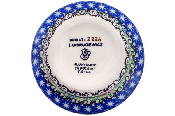 This Sprouting Cupids 3" Candle Holder was handmade and hand decorated in Boleslawiec, Poland by skilled artisans according to old traditional methods. This is a Polish pottery Signature Unikat, which means that it has been hand painted with both sponges and brushes and it is signed by the artist who painted it. Unikat pieces are the most intricate works of art. Larger Unikat items take hours of very careful work to finish. This Polish stoneware is microwave, dishwasher, freezer, and oven safe up to 480°F. It does not contain lead or cadmium. It is part of the Sprouting Cupids Collection.
