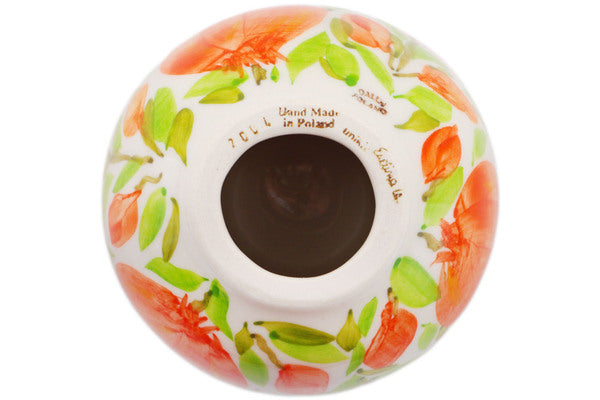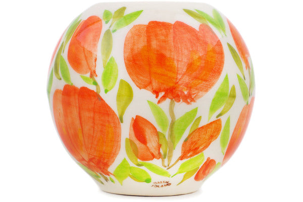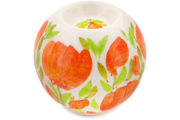 This Apricot Petals 4" Candle Holder was handmade and hand decorated in Boleslawiec, Poland by skilled artisans according to old traditional methods. This is a Polish pottery Signature Unikat, which means that it has been hand painted with both sponges and brushes and it is signed by the artist who painted it. Unikat pieces are the most intricate works of art. Larger Unikat items take hours of very careful work to finish. This Polish stoneware is microwave, dishwasher, freezer, and oven safe up to 480°F. It does not contain lead or cadmium. It is part of the Apricot Petals Collection.