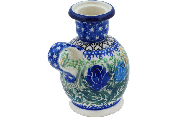 This Brilliant Blue Rose 4" Candle Holder was handmade and hand decorated in Boleslawiec, Poland by skilled artisans according to old traditional methods. This is a Polish pottery Signature Unikat, which means that it has been hand painted with both sponges and brushes and it is signed by the artist who painted it. Unikat pieces are the most intricate works of art. Larger Unikat items take hours of very careful work to finish. This Polish stoneware is microwave, dishwasher, freezer, and oven safe up to 480°F. It does not contain lead or cadmium. It is part of the Brilliant Blue Rose Collection.