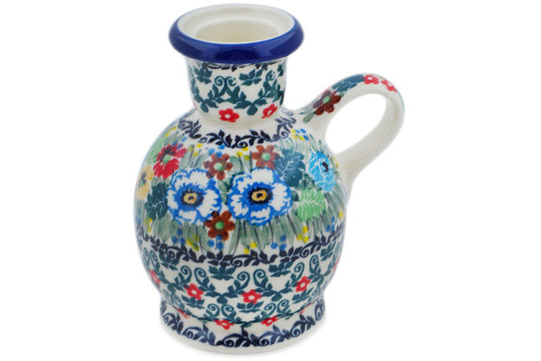 This Delightful Motif 4" Candle Holder was handmade and hand decorated in Boleslawiec, Poland by skilled artisans according to old traditional methods. This is a Polish pottery Signature Unikat, which means that it has been hand painted with both sponges and brushes and it is signed by the artist who painted it. Unikat pieces are the most intricate works of art. Larger Unikat items take hours of very careful work to finish. This Polish stoneware is microwave, dishwasher, freezer, and oven safe up to 480°F. It does not contain lead or cadmium. It is part of the Delightful Motif Collection.