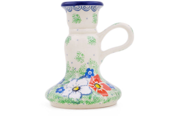 This Lovely Hibiscus 4" Candle Holder was handmade and hand decorated in Boleslawiec, Poland by skilled artisans according to old traditional methods. This is a Polish pottery Signature Unikat, which means that it has been hand painted with both sponges and brushes and it is signed by the artist who painted it. Unikat pieces are the most intricate works of art. Larger Unikat items take hours of very careful work to finish. This Polish stoneware is microwave, dishwasher, freezer, and oven safe up to 480°F. It does not contain lead or cadmium. It is part of the Lovely Hibiscus Collection.
