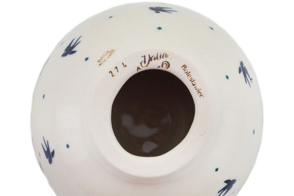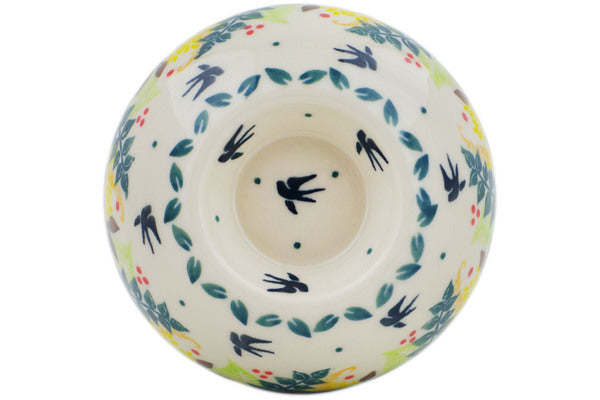 This Sunny Swallow 4" Candle Holder was handmade and hand decorated in Boleslawiec, Poland by skilled artisans according to old traditional methods. This is a Polish pottery Signature Unikat, which means that it has been hand painted with both sponges and brushes and it is signed by the artist who painted it. Unikat pieces are the most intricate works of art. Larger Unikat items take hours of very careful work to finish. This Polish stoneware is microwave, dishwasher, freezer, and oven safe up to 480°F. It does not contain lead or cadmium. It is part of the Sunny Swallow Collection.