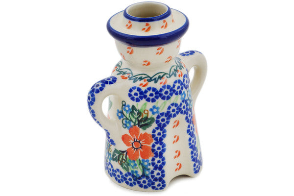 This Brilliant Pansy 5" Candle Holder was handmade and hand decorated in Boleslawiec, Poland by skilled artisans according to old traditional methods. This is a Polish pottery Signature Unikat, which means that it has been hand painted with both sponges and brushes and it is signed by the artist who painted it. Unikat pieces are the most intricate works of art. Larger Unikat items take hours of very careful work to finish. This Polish stoneware is microwave, dishwasher, freezer, and oven safe up to 480°F. It does not contain lead or cadmium. It is part of the Brilliant Pansy Collection.