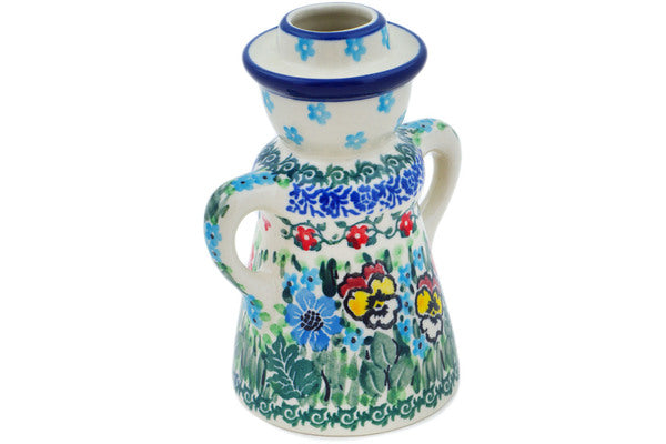 This Country Bouquet 5" Candle Holder was handmade and hand decorated in Boleslawiec, Poland by skilled artisans according to old traditional methods. This is a Polish pottery Signature Unikat, which means that it has been hand painted with both sponges and brushes and it is signed by the artist who painted it. Unikat pieces are the most intricate works of art. Larger Unikat items take hours of very careful work to finish. This Polish stoneware is microwave, dishwasher, freezer, and oven safe up to 480°F. It does not contain lead or cadmium. It is part of the Country Bouquet Collection.