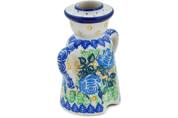 This English Rose 5" Candle Holder was handmade and hand decorated in Boleslawiec, Poland by skilled artisans according to old traditional methods. This is a Polish pottery Signature Unikat, which means that it has been hand painted with both sponges and brushes and it is signed by the artist who painted it. Unikat pieces are the most intricate works of art. Larger Unikat items take hours of very careful work to finish. This Polish stoneware is microwave, dishwasher, freezer, and oven safe up to 480°F. It does not contain lead or cadmium. It is part of the English Rose Collection.