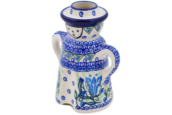 This Gentian Wreath 5" Candle Holder was handmade and hand decorated in Boleslawiec, Poland by skilled artisans according to old traditional methods. This is a Polish pottery Signature Unikat, which means that it has been hand painted with both sponges and brushes and it is signed by the artist who painted it. Unikat pieces are the most intricate works of art. Larger Unikat items take hours of very careful work to finish. This Polish stoneware is microwave, dishwasher, freezer, and oven safe up to 480°F. It does not contain lead or cadmium. It is part of the Gentian Wreath Collection.