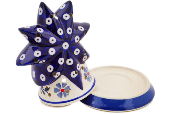This Peacock Forget-Me-Not 5" Candle Holder was handmade and hand decorated in Boleslawiec, Poland by skilled artisans according to old traditional methods. This Polish stoneware is microwave, dishwasher, freezer, and oven safe up to 480°F. It does not contain lead or cadmium. It is part of the Peacock Forget-Me-Not Collection.