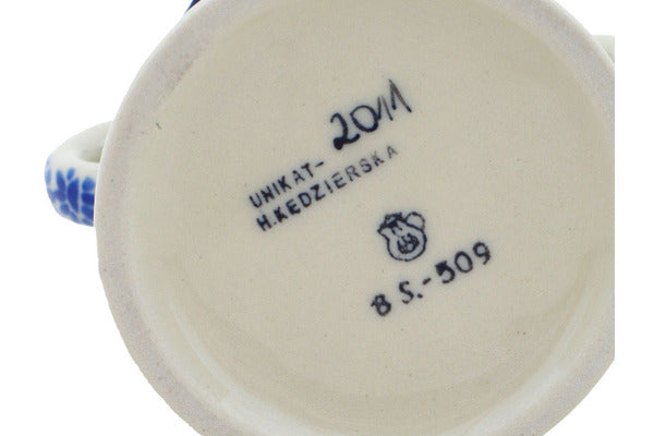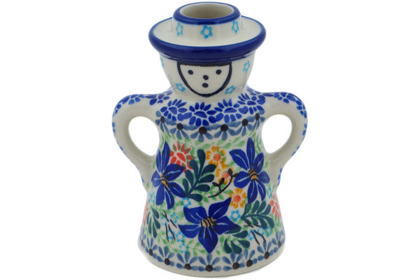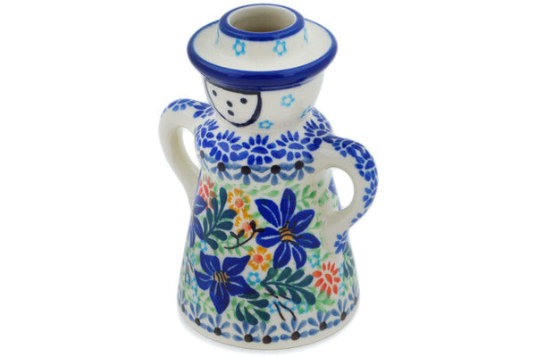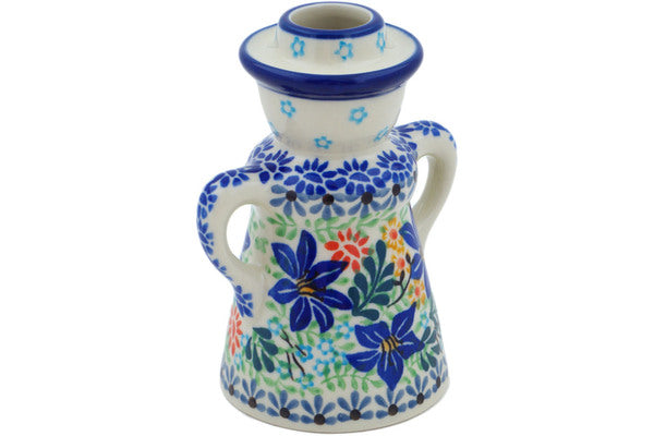 This Sapphire Lilies 5" Candle Holder was handmade and hand decorated in Boleslawiec, Poland by skilled artisans according to old traditional methods. This is a Polish pottery Signature Unikat, which means that it has been hand painted with both sponges and brushes and it is signed by the artist who painted it. Unikat pieces are the most intricate works of art. Larger Unikat items take hours of very careful work to finish. This Polish stoneware is microwave, dishwasher, freezer, and oven safe up to 480°F. It does not contain lead or cadmium. It is part of the Sapphire Lilies Collection.