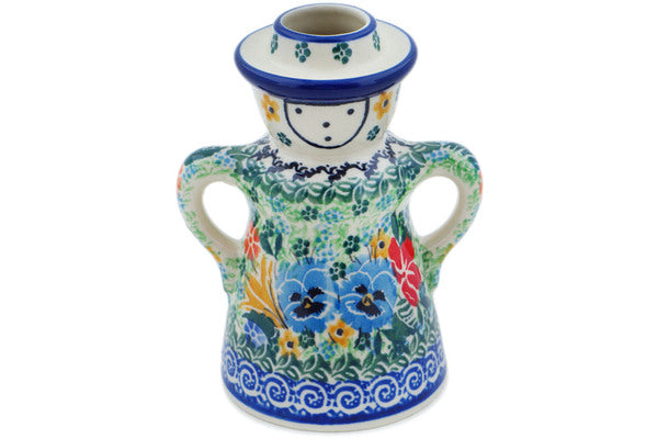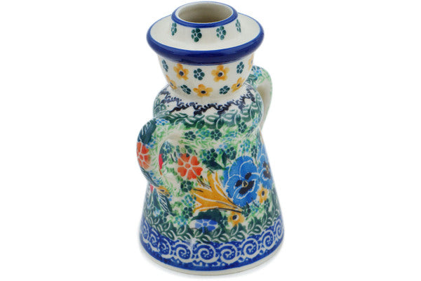 This Vibrant Bouquet 5" Candle Holder was handmade and hand decorated in Boleslawiec, Poland by skilled artisans according to old traditional methods. This is a Polish pottery Signature Unikat, which means that it has been hand painted with both sponges and brushes and it is signed by the artist who painted it. Unikat pieces are the most intricate works of art. Larger Unikat items take hours of very careful work to finish. This Polish stoneware is microwave, dishwasher, freezer, and oven safe up to 480°F. It does not contain lead or cadmium. It is part of the Vibrant Bouquet Collection.