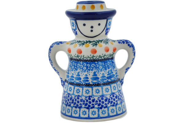 This Winter Forest 5" Candle Holder was handmade and hand decorated in Boleslawiec, Poland by skilled artisans according to old traditional methods. This is a Polish pottery Signature Unikat, which means that it has been hand painted with both sponges and brushes and it is signed by the artist who painted it. Unikat pieces are the most intricate works of art. Larger Unikat items take hours of very careful work to finish. This Polish stoneware is microwave, dishwasher, freezer, and oven safe up to 480°F. It does not contain lead or cadmium. It is part of the Winter Forest Collection.