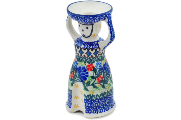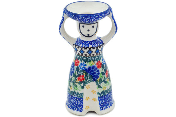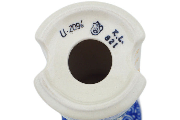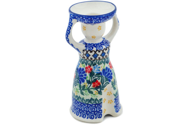 This Blue Bonnets 6" Candle Holder was handmade and hand decorated in Boleslawiec, Poland by skilled artisans according to old traditional methods. This is a Polish pottery Signature Unikat, which means that it has been hand painted with both sponges and brushes and it is signed by the artist who painted it. Unikat pieces are the most intricate works of art. Larger Unikat items take hours of very careful work to finish. This Polish stoneware is microwave, dishwasher, freezer, and oven safe up to 480°F. It does not contain lead or cadmium. It is part of the Blue Bonnets Collection.