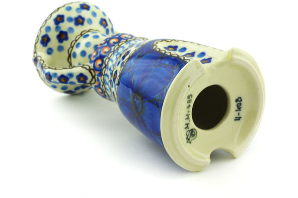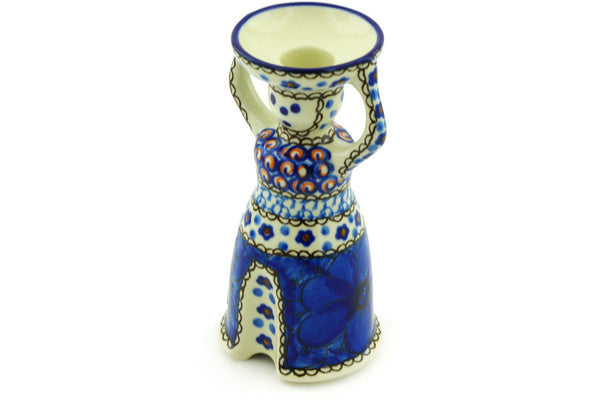 This Cobalt Poppies 6" Candle Holder was handmade and hand decorated in Boleslawiec, Poland by skilled artisans according to old traditional methods. This is a Polish pottery Signature Unikat, which means that it has been hand painted with both sponges and brushes and it is signed by the artist who painted it. Unikat pieces are the most intricate works of art. Larger Unikat items take hours of very careful work to finish. This Polish stoneware is microwave, dishwasher, freezer, and oven safe up to 480°F. It does not contain lead or cadmium. It is part of the Cobalt Poppies Collection.