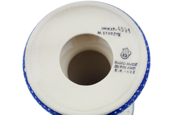 This Floral Animation 6" Candle Holder was handmade and hand decorated in Boleslawiec, Poland by skilled artisans according to old traditional methods. This is a Polish pottery Signature Unikat, which means that it has been hand painted with both sponges and brushes and it is signed by the artist who painted it. Unikat pieces are the most intricate works of art. Larger Unikat items take hours of very careful work to finish. This Polish stoneware is microwave, dishwasher, freezer, and oven safe up to 480°F. It does not contain lead or cadmium. It is part of the Floral Animation Collection.
