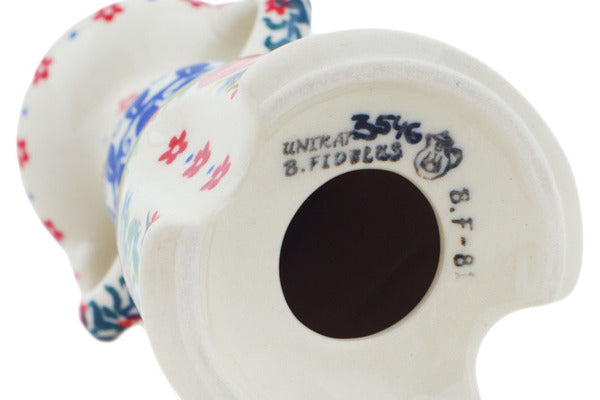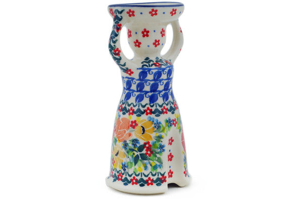 This Lovely Surprise 6" Candle Holder was handmade and hand decorated in Boleslawiec, Poland by skilled artisans according to old traditional methods. This is a Polish pottery Signature Unikat, which means that it has been hand painted with both sponges and brushes and it is signed by the artist who painted it. Unikat pieces are the most intricate works of art. Larger Unikat items take hours of very careful work to finish. This Polish stoneware is microwave, dishwasher, freezer, and oven safe up to 480°F. It does not contain lead or cadmium. It is part of the Lovely Surprise Collection.