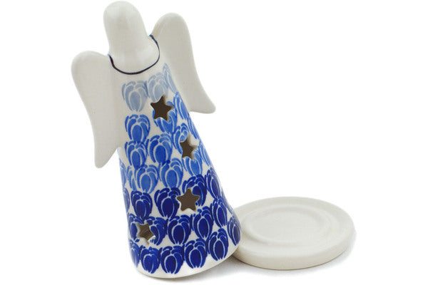 This Retro Blue Tulips 6" Candle Holder was handmade and hand decorated in Boleslawiec, Poland by skilled artisans according to old traditional methods. This Polish stoneware is microwave, dishwasher, freezer, and oven safe up to 480°F. It does not contain lead or cadmium. It is part of the Retro Blue Tulips Collection.