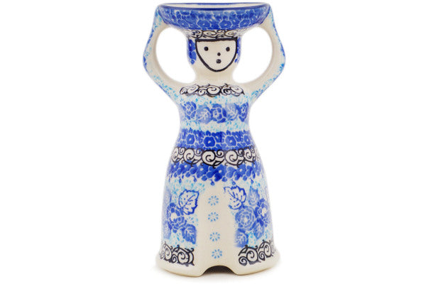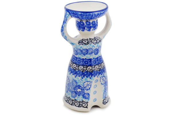 This Shades Of Blue 6" Candle Holder was handmade and hand decorated in Boleslawiec, Poland by skilled artisans according to old traditional methods. This is a Polish pottery Signature Unikat, which means that it has been hand painted with both sponges and brushes and it is signed by the artist who painted it. Unikat pieces are the most intricate works of art. Larger Unikat items take hours of very careful work to finish. This Polish stoneware is microwave, dishwasher, freezer, and oven safe up to 480°F. It does not contain lead or cadmium. It is part of the Shades Of Blue Collection.