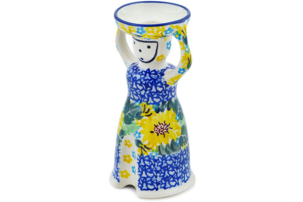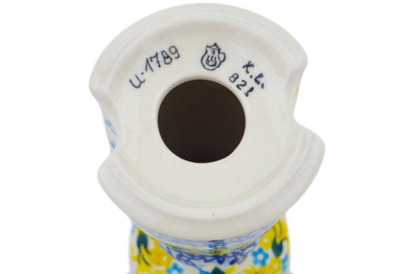 This Sunflower Surprise 6" Candle Holder was handmade and hand decorated in Boleslawiec, Poland by skilled artisans according to old traditional methods. This is a Polish pottery Signature Unikat, which means that it has been hand painted with both sponges and brushes and it is signed by the artist who painted it. Unikat pieces are the most intricate works of art. Larger Unikat items take hours of very careful work to finish. This Polish stoneware is microwave, dishwasher, freezer, and oven safe up to 480°F. It does not contain lead or cadmium. It is part of the Sunflower Surprise Collection.