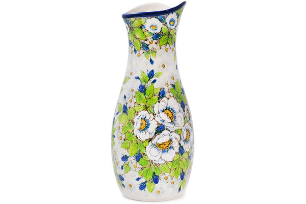 This Little Wild Field Flowers 5 Cup Carafe was handmade and hand decorated in Boleslawiec, Poland by skilled artisans according to old traditional methods. This is a Polish pottery Signature Unikat, which means that it has been hand painted with both sponges and brushes and it is signed by the artist who painted it. Unikat pieces are the most intricate works of art. Larger Unikat items take hours of very careful work to finish. This Polish stoneware is microwave, dishwasher, freezer, and oven safe up to 480°F. It does not contain lead or cadmium. It is part of the Little Wild Field Flowers Collection.
