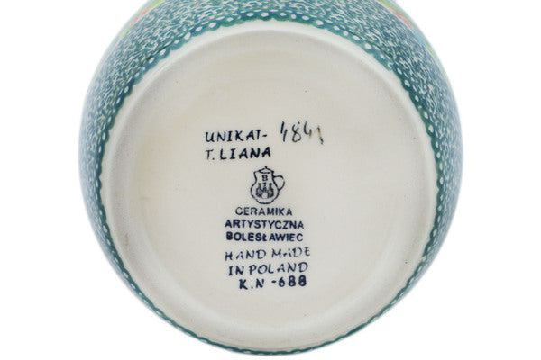 This Pretty Pansies 5 Cup Carafe was handmade and hand decorated in Boleslawiec, Poland by skilled artisans according to old traditional methods. This is a Polish pottery Signature Unikat, which means that it has been hand painted with both sponges and brushes and it is signed by the artist who painted it. Unikat pieces are the most intricate works of art. Larger Unikat items take hours of very careful work to finish. This Polish stoneware is microwave, dishwasher, freezer, and oven safe up to 480°F. It does not contain lead or cadmium. It is part of the Pretty Pansies Collection.