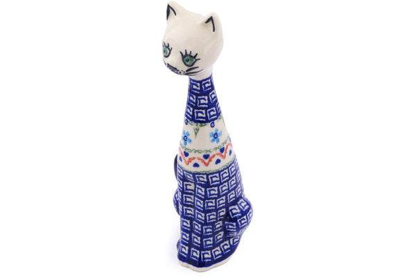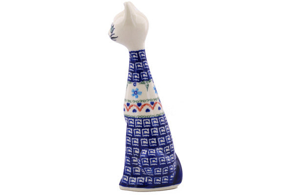 This Little Blue Flowers 10" Cat Figurine was handmade and hand decorated in Boleslawiec, Poland by skilled artisans according to old traditional methods. This Polish stoneware is microwave, dishwasher, freezer, and oven safe up to 480°F. It does not contain lead or cadmium. It is part of the Little Blue Flowers Collection.