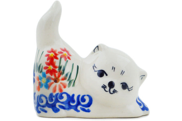 This Blissful Daisy 3" Cat Figurine was handmade and hand decorated in Boleslawiec, Poland by skilled artisans according to old traditional methods. This Polish stoneware is microwave, dishwasher, freezer, and oven safe up to 480°F. It does not contain lead or cadmium. It is part of the Blissful Daisy Collection.