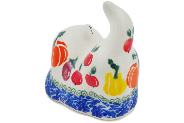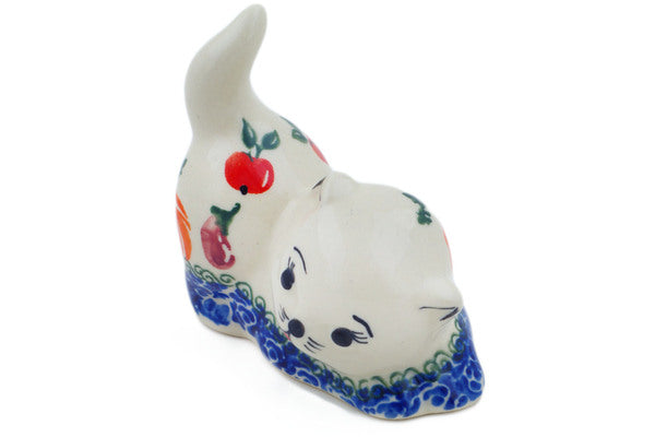 This Fresh Vegetable Garden 3" Cat Figurine was handmade and hand decorated in Boleslawiec, Poland by skilled artisans according to old traditional methods. This Polish stoneware is microwave, dishwasher, freezer, and oven safe up to 480°F. It does not contain lead or cadmium. It is part of the Fresh Vegetable Garden Collection.