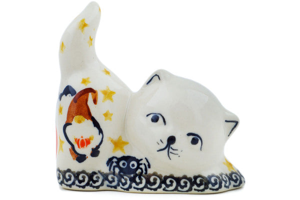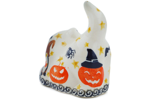 This Harvest Haunt 3" Cat Figurine was handmade and hand decorated in Boleslawiec, Poland by skilled artisans according to old traditional methods. This Polish stoneware is microwave, dishwasher, freezer, and oven safe up to 480°F. It does not contain lead or cadmium. It is part of the Harvest Haunt Collection.
