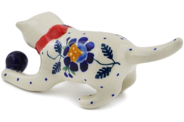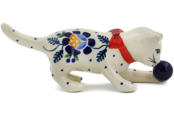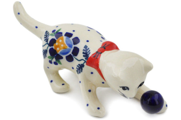 This Orange And Blue Flower 5" Cat Figurine was handmade and hand decorated in Boleslawiec, Poland by skilled artisans according to old traditional methods. This Polish stoneware is microwave, dishwasher, freezer, and oven safe up to 480°F. It does not contain lead or cadmium. It is part of the Orange And Blue Flower Collection.