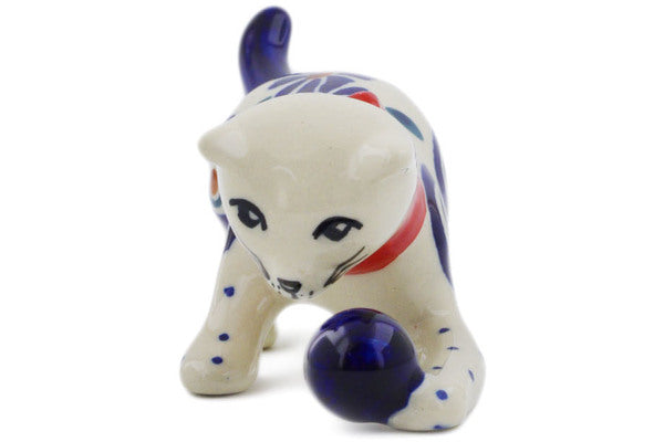 This Peacock 5" Cat Figurine was handmade and hand decorated in Boleslawiec, Poland by skilled artisans according to old traditional methods. This Polish stoneware is microwave, dishwasher, freezer, and oven safe up to 480°F. It does not contain lead or cadmium. It is part of the Peacock Collection.