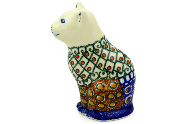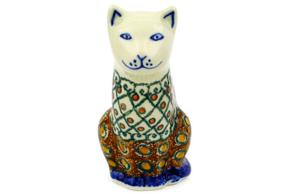 This Turkish Delight 5" Cat Figurine was handmade and hand decorated in Boleslawiec, Poland by skilled artisans according to old traditional methods. This is a Polish pottery Signature Unikat, which means that it has been hand painted with both sponges and brushes and it is signed by the artist who painted it. Unikat pieces are the most intricate works of art. Larger Unikat items take hours of very careful work to finish. This Polish stoneware is microwave, dishwasher, freezer, and oven safe up to 480°F. It does not contain lead or cadmium. It is part of the Turkish Delight Collection.