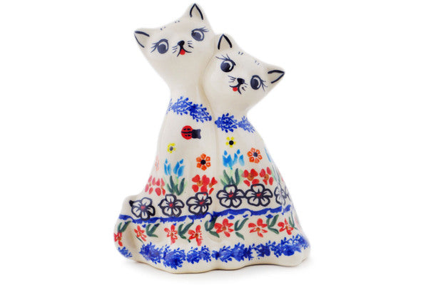 This Fanciful Ladybug 7" Cat Figurine was handmade and hand decorated in Boleslawiec, Poland by skilled artisans according to old traditional methods. This Polish stoneware is microwave, dishwasher, freezer, and oven safe up to 480°F. It does not contain lead or cadmium. It is part of the Fanciful Ladybug Collection.
