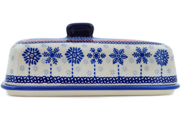 This Winter Sights 8" Cheese Dish was handmade and hand decorated in Boleslawiec, Poland by skilled artisans according to old traditional methods. This is a Polish pottery Signature Unikat, which means that it has been hand painted with both sponges and brushes and it is signed by the artist who painted it. Unikat pieces are the most intricate works of art. Larger Unikat items take hours of very careful work to finish. This Polish stoneware is microwave, dishwasher, freezer, and oven safe up to 480°F. It does not contain lead or cadmium. It is part of the Winter Sights Collection.