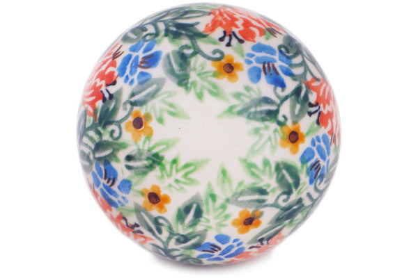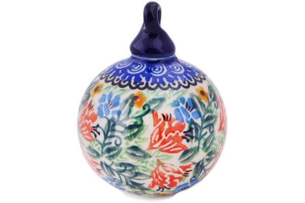 This Peach Fan Fare 3" Christmas Ball Ornament was handmade and hand decorated in Boleslawiec, Poland by skilled artisans according to old traditional methods. This is a Polish pottery Signature Unikat, which means that it has been hand painted with both sponges and brushes and it is signed by the artist who painted it. Unikat pieces are the most intricate works of art. Larger Unikat items take hours of very careful work to finish. This Polish stoneware is microwave, dishwasher, freezer, and oven safe up to 480°F. It does not contain lead or cadmium. It is part of the Peach Fan Fare Collection.