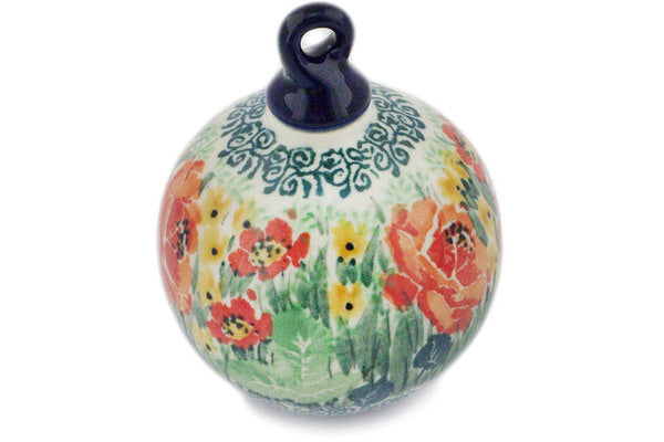 This Splendid Meadow 3" Christmas Ball Ornament was handmade and hand decorated in Boleslawiec, Poland by skilled artisans according to old traditional methods. This is a Polish pottery Signature Unikat, which means that it has been hand painted with both sponges and brushes and it is signed by the artist who painted it. Unikat pieces are the most intricate works of art. Larger Unikat items take hours of very careful work to finish. This Polish stoneware is microwave, dishwasher, freezer, and oven safe up to 480°F. It does not contain lead or cadmium. It is part of the Splendid Meadow Collection.