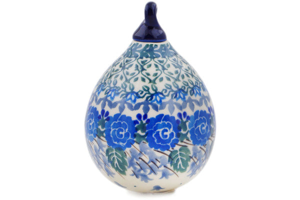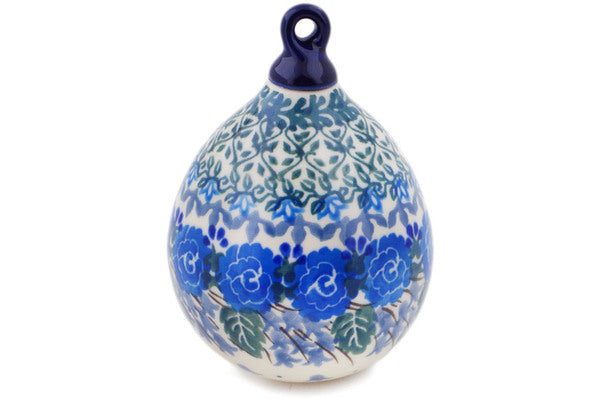 This Blue Rose Trellis 4" Christmas Ball Ornament was handmade and hand decorated in Boleslawiec, Poland by skilled artisans according to old traditional methods. This is a Polish pottery Signature Unikat, which means that it has been hand painted with both sponges and brushes and it is signed by the artist who painted it. Unikat pieces are the most intricate works of art. Larger Unikat items take hours of very careful work to finish. This Polish stoneware is microwave, dishwasher, freezer, and oven safe up to 480°F. It does not contain lead or cadmium. It is part of the Blue Rose Trellis Collection.