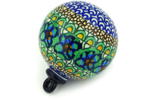 This Mardi Gras 4" Christmas Ball Ornament was handmade and hand decorated in Boleslawiec, Poland by skilled artisans according to old traditional methods. This is a Polish pottery Signature Unikat, which means that it has been hand painted with both sponges and brushes and it is signed by the artist who painted it. Unikat pieces are the most intricate works of art. Larger Unikat items take hours of very careful work to finish. This Polish stoneware is microwave, dishwasher, freezer, and oven safe up to 480°F. It does not contain lead or cadmium. It is part of the Mardi Gras Collection.