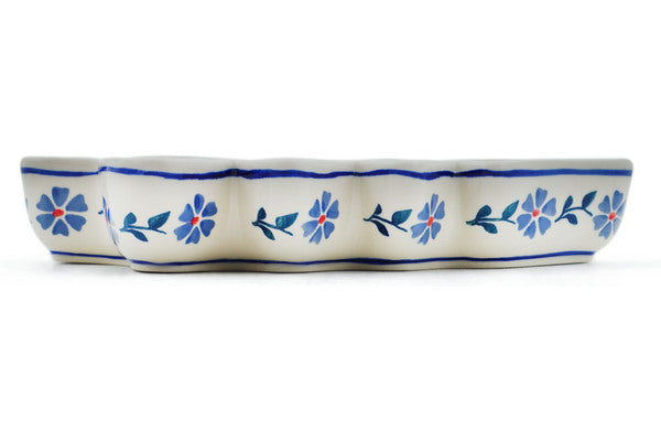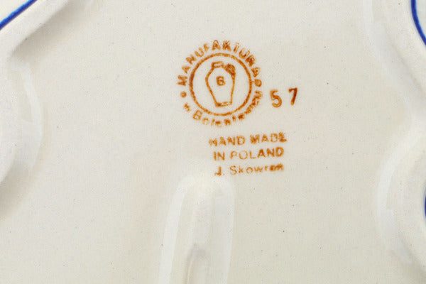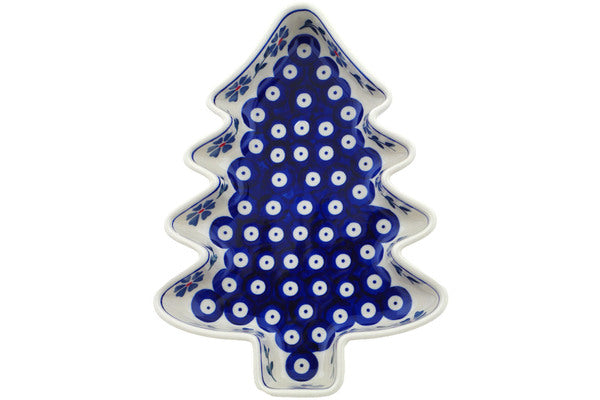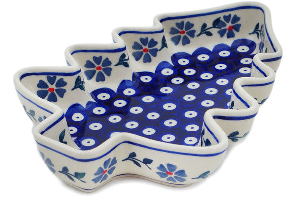 This Peacock Forget-Me-Not 9" Christmas Tree Bowl was handmade and hand decorated in Boleslawiec, Poland by skilled artisans according to old traditional methods. This Polish stoneware is microwave, dishwasher, freezer, and oven safe up to 480°F. It does not contain lead or cadmium. It is part of the Peacock Forget-Me-Not Collection.