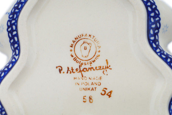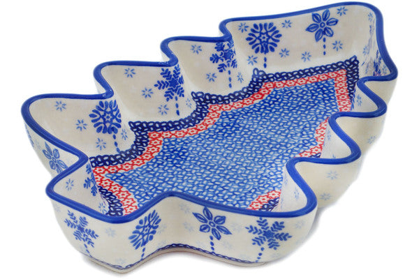 This Winter Sights 9" Christmas Tree Bowl was handmade and hand decorated in Boleslawiec, Poland by skilled artisans according to old traditional methods. This is a Polish pottery Signature Unikat, which means that it has been hand painted with both sponges and brushes and it is signed by the artist who painted it. Unikat pieces are the most intricate works of art. Larger Unikat items take hours of very careful work to finish. This Polish stoneware is microwave, dishwasher, freezer, and oven safe up to 480°F. It does not contain lead or cadmium. It is part of the Winter Sights Collection.