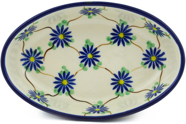 This Aster Trellis 6" Condiment Dish was handmade and hand decorated in Boleslawiec, Poland by skilled artisans according to old traditional methods. This Polish stoneware is microwave, dishwasher, freezer, and oven safe up to 480°F. It does not contain lead or cadmium. It is part of the Aster Trellis Collection.