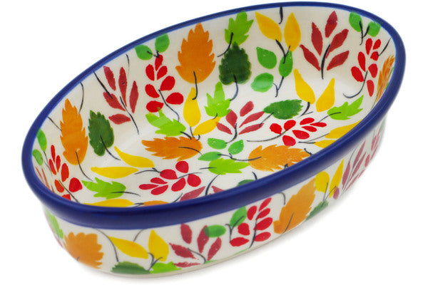 This Falling For You 6" Condiment Dish was handmade and hand decorated in Boleslawiec, Poland by skilled artisans according to old traditional methods. This is a Polish pottery Signature Unikat, which means that it has been hand painted with both sponges and brushes and it is signed by the artist who painted it. Unikat pieces are the most intricate works of art. Larger Unikat items take hours of very careful work to finish. This Polish stoneware is microwave, dishwasher, freezer, and oven safe up to 480°F. It does not contain lead or cadmium. It is part of the Falling For You Collection.